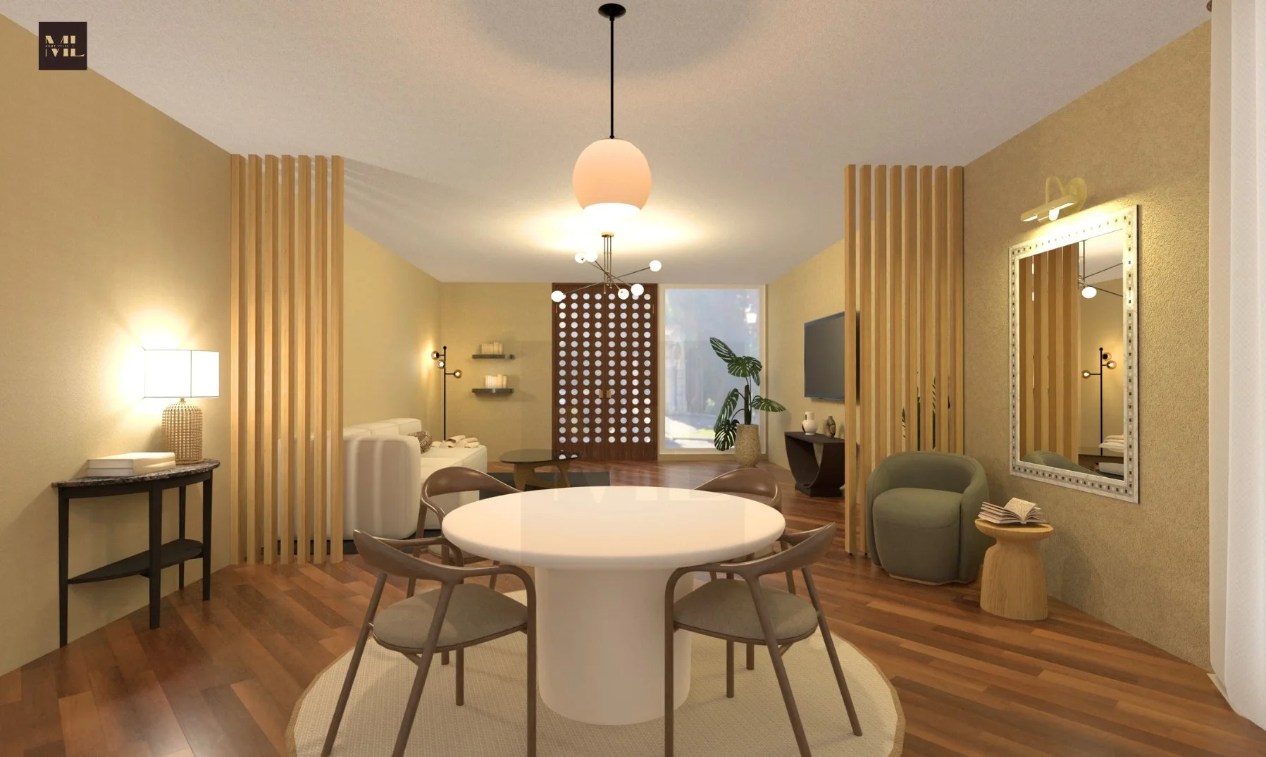 A selection of moodboards, 2D plans and 3D visualisations that reflect the design direction and atmosphere created for residential and commercial projects.